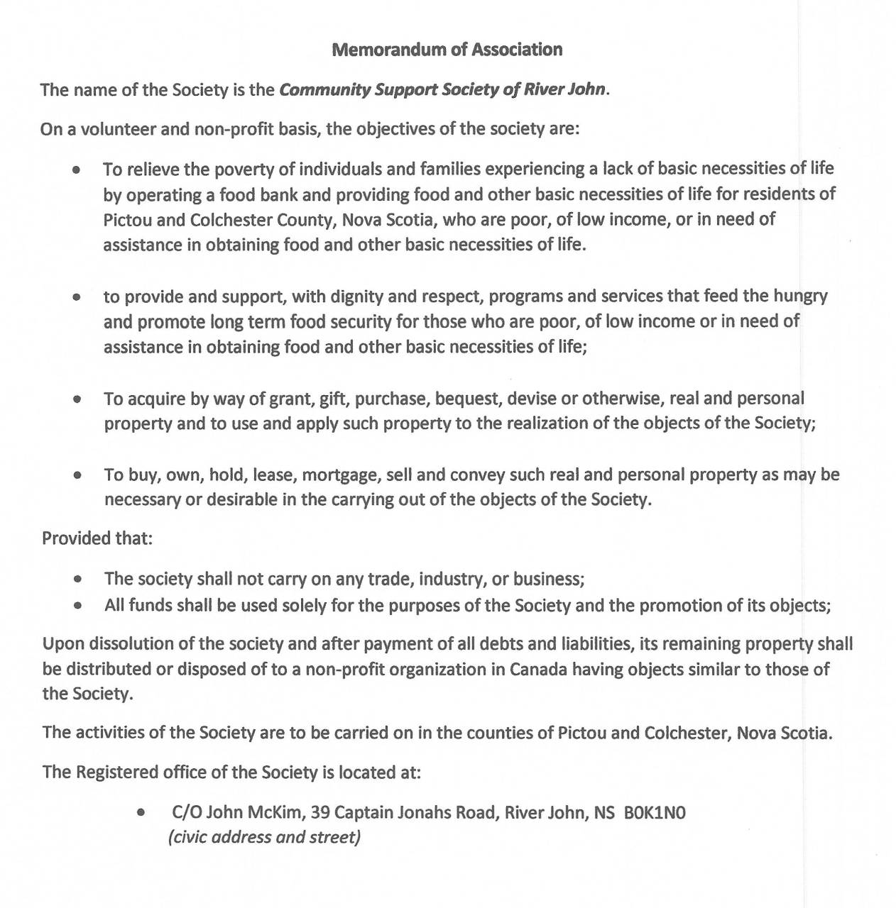 Our Memorandum of Association (Mission Statement)